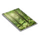 Cette photo comporte le soleil brillant par la forêt d'arbre couverte par mousse.
