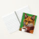 Ce renard est muni d'un renard habillé de lunettes et tricoté foulard en buvant une tasse de thé chaude.