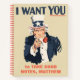 Oncle Sam est là pour vous dire de prendre de bonnes notes, de faire vos devoirs, ou tout autre message que vous voudriez. Créez votre propre carnet amusant lorsque vous customisez le texte rouge sous l'Oncle Sam avec votre propre texte personnalisé. Ce carnet en spirale est dans le style de l'affiche de recrutement classique de l'Oncle Sam pour un design patriotique amusant avec un look historique.