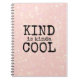 "Kind is Kinda Cool" Kindness and Be Kind theme carnet. Typographie de police de machine à écrire dans un design simple et élégant avec un effet brillant rose girly arrière - plan et un message positif!