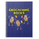 Geocaching Rocks texte avec trois roches dansantes tenant des récepteurs GPS est un design de géocaching amusant pour les cachers lors des anniversaires, des vacances et des événements de géocaching.