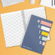 Un carnet bleu pour les filles avec un texte coloré qui dit "NOTES" et un nom complet monogrammé personnalisé.