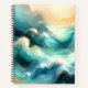 Soft flowing waves in rich teal and turquoise tones blend seamlessly with warm golden light.