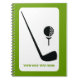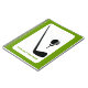 Club de golf et boule noir, livre vert coutume qui présente une icône minimaliste d'un club de golf noir et balle et votre texte sur arrière - plan blanc avec bordure verte.