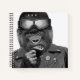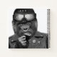 Ce design comprend un gorille habillé d'une veste en cuir, de lunettes et d'un casque.