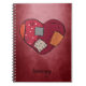 Carnet spiral à thème goth fait dans un arrière - plan gris rouge, avec des graphiques d'un coeur noir, rouge, orange et gris patché. Personnalisez le texte noir pour répondre à vos besoins.