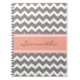 Un beau journal en spirale avec les chevrons de rose de pêche élégante et moderne, gris et blancs oranges rétros zigzague motif de rayures. Customisez ce carnet avec votre texte nommé ou fait sur commande.