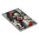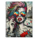 Art unique de l'air représentant une belle femme moderne aux cheveux roses et bleus, lunettes de soleil avec un reflet de la ville, des vibes post-apocalyptiques arrière - plans urbaines.
