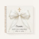 Celebrate her First Holy Communion with this luxurious guest book featuring a refined ivory bow adorned with delicate pearls and a subtle gold cross, set against a soft ivory background.