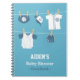Compilez un guestbook pour l'événement avec ce guestbook orienté de baby shower de base-ball ! Cette conception moderne, chique pourtant mignonne de base-ball a des articles de bébé accrocher sur la corde à linge pour peu. Ils incluent une couche-culotte de base-ball, un casquette avec l'icône d'étoile, le tee - shirt de base-ball et une mitaine. Une palette de couleur de bleu et du blanc qui la fait plus adaptée à un bébé. Personnalisez facilement avec le message.