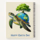 This vibrant Earth Day design features a majestic sea turtle swimming gracefully while carrying a beautiful globe on its shell, topped with a thriving green tree. The artwork symbolizes the deep connection between wildlife, nature, and our planet. The message “Happy Earth Day” celebrates the importance of protecting Earth and preserving its natural beauty for future generations. The turtle represents longevity, wisdom, and the fragile balance of marine ecosystems, while the growing tree reflects renewal, sustainability, and hope. Together with the Earth imagery, the design inspires awareness and love for the environment. Perfect for a variety of products, this meaningful illustration encourages people to care for nature, protect wildlife, and celebrate Earth Day every day.