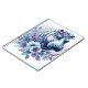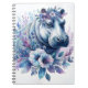 Le carnet présente une aquarelle botanique d'un hippopotame avec une esthétique féminine dans les tons bleu cool et violet. Un portrait d'animal sauvage floral de Dee Claire.