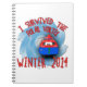 J'ai survécu (à peine) au vortex polaire de l'hiver 2014 ! Caractéristiques de conception drôles un petit pingouin tout enveloppé contre le vortex de tourbillonnement clouté avec des flocons de neige, derrière lui. Le texte me lit A SURVÉCU À L'HIVER POLAIRE 2014 de VORTEX.