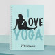 Magasin de yoga personnalisé mignon avec yoga écrit dans une belle couleur turquoise et une femme étirée dans une jolie pose.