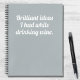 Après un verre de vin, il peut être difficile de garder une trace de toutes les idées brillantes que vous trouvez...entrez dans le carnet trusty ! Avec un arrière - plan gris bleu clair, la typographie blanche "Des idées brillantes que j'ai eu en buvant du vin".