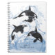 Incroyable aquarelle orques art de nager et de sauter orques et une petite orque avec des éclaboussures d'eau et des vagues. Personnalisez en changeant le texte ou la personnaliser pour ajouter votre propre touche.