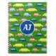 Mignonne, dessin animé, carnet de défilé de voiture coloré pour écolier garçon avec initiales géantes.