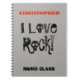 J'aime le Rock, la typographie du cours de musique. Insérez le nom de l'élève en texte rouge. Police cool en noir sur fond gris. Des crânes amusants remplacent les lettres o. Personnalisez avec le nom, la matière de la classe scolaire, etc. (vous pouvez supprimer le champ de texte exemple Cours de musique, ou laisser le mot Classe et écrire le nom de la matière à la main avec un marqueur permanent pour avoir des noms de dossier individuels dans ce design).