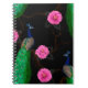 Oiseaux de paon perchés sur des branches et fleurs de camélia rose, ce motif est dessiné à la main dans Photoshop.