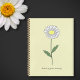 Un carnet jaune pour l'école ou le travail avec une illustration de fleur de marguerite botanique en couleurs pastel (Leucanthemum vulgare) et des textes personnalisables : idée cadeau parfaite pour une fille qui aime les fleurs. La marguerite est la fleur de naissance d'avril et elle symbolise la gentillesse, la pureté, l'innocence, la joie et la joie.