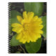 Ce carnet impressionnant présente une photo détaillée d'un marigold jaune vif. La photographie a été prise en macro et montre un contraste saisissant entre cette fleur jaune vif et ses feuilles vert foncé.