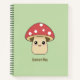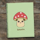 Un cahier vert avec une illustration d'un joli champignon dans le style cartoon et un texte personnalisable en dessous ! Cela pourrait être parfait pour un enfant ou un ami qui aime les personnages Kawaii et la nature !