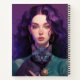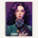 Carnet Jolie fille Boho, Cheveux pourpre, Chat noir, Mono