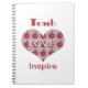 carnet de Merci pour la journée d'appréciation des enseignants avec l'inscription "Enseigner, amour, inspirer" et coeur avec le motif de pomme mignon.