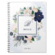 Ce carnet élégant et magnifique présente un cadre bleu marine, bleu clair, et rose vif fleurs d'aquarelle couleur marine avec feuilles vert et beige neutre, et votre nom et monogramme ou initiale dans le centre.
