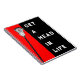 slogan de crosse et graphisme à bâton de lessive sur carnet rouge. Pour personnaliser, ajoutez un nom.