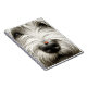 Gros plan extrême d'une coccinelle sur le nez d'un chien brun.