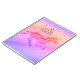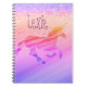 A pink lavender and orange shaded mythical unicorn with stars on an ombre lavender pink backdrop complete with pink and lavender glitter where below that you can personalize it to make it uniquely your own. Girlish magical fantasy vibes.
