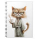 Un chat de dessin humoristique grincheux se tient en robe tenant une tasse de café vapeur, clairement pas un ventilateur du matin. Sa fourrure désordonnée, son éblouissement intense et son ambiance générale "ne me parlez pas encore" en font un parfait état d’esprit visuel pour quiconque avant la caféine.