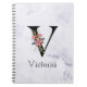 Carnet Lettre "V" Boho Floral Marbre blanc Monogramme
