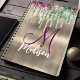 Carnet Licorne dorée mignonne monogramme Drips Glitter