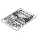 This black-and-white illustrated design features a classic camper van parked in a serene forest campsite, surrounded by tall pine trees, mountains, and a flowing stream. Bold typography reads “Life Rocks When Your Living Room Rolls!”, celebrating van life, RV travel, and the freedom of the open road. Rendered in a vintage woodcut-style illustration, this design is perfect for campers, travelers, digital nomads, and outdoor adventure lovers who enjoy journaling, planning trips, or taking notes on the go.