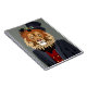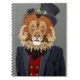 Ce portrait de caractéristiques de conception d'un lion dans le costume et le casquette d'un homme.