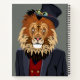 Ce design présente le portrait d'un lion dans le costume d'homme et le casquette.