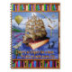 Ce magnifique carnet en spirale d'imaginaire original est basé sur le poème d'Emily Dickinson qui commence, "Il n'y a pas de frégate comme un livre pour nous emmener des terres." La citation apparaît en bas, sous un voilier masqué fait d'un livre antique. Les mots du poème sont gribouillés partout. Ils sont déchirés en regardant les voiles, ils entourent le ballon au loin, et ils décorent les ailes d'une libellule qui a un corps de crayon. Ils apparaissent même faiblement sur l'arc-en-ciel défraîchi. Pendant ce temps, les mouettes volent tandis qu'un orque et un calmar pourpre entourent le navire à livre. C'est une jolie scène surréaliste pour n'importe quel amateur de livres, lecteur passionné, écrivain, professeur d'anglais, bibliothécaire ou propriétaire de librairie. Le haut et le bas sont bordés par un motif de bibliothèque. Remarque : Cette conception est protégée par le droit d'auteur. Merci!
