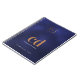 Un fond bleu marine, texte doré et blanc. La couleur bleue est inégale. Personnalisez et ajoutez votre logo, initiales du monogramme, nom et titre.