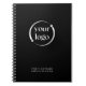 Personnalisez ce design simple et moderne de cahier en remplaçant le logo d'exemple figurant dans le modèle de conception par votre image de logo. Faites la promotion de votre entreprise, club, passe-temps ou autre activité facilement avec des produits de qualité. Illustré ici avec un fond noir moderne et sophistiqué, vous pouvez changer la couleur en sélectionnant "Modifier à l'aide de l'outil de conception" qui ouvre l'éditeur complet pour changer les couleurs de fond et déplacer le texte. Personnalisez le modèle de texte avec le texte souhaité.