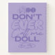 Possède ton pouvoir avec la citation de Lola ! Ce design audacieux présente la silhouette de Lola Bunny à côté de l'emblématique "Ne jamais m'appeler poupée", célébrant sa force et son indépendance. L'Est. Le détail de 1996" apporte une touche de nostalgie. Personnalisez votre équipement Zazzle - du vêtement aux accessoires - avec cette oeuvre d'art habilitante. Montrez votre amour pour Lola Bunny, confiante et sans excuses, et faites une déclaration avec ce design unique!