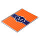 Les rayures oranges modernes et élégantes avec le cadre de bannière de bleu marine conçoivent dans le forn moyen votre initiale personnalisée de monogramme.