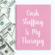 Carnet rose "bourrage d'argent est mon traitement". Un devis amusant de planificateur de budget pour quelqu'un qui aime ce système de budgétisation d'enveloppe et veut un moyen de suivre l'épargne librement avec des pages vierges ou en règle à l'intérieur.