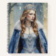 Una reina majestuosa y poderosa se presenta con un vestido azul y un manto con borde de piel, su largo cabello fluyendo como un río de noche. Un diseño que evoca la elegancia y la autoridad de una monarca.