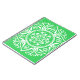 Ce mandala blanc est assis sur un arrière - plan vert printanier. Les couleurs sont énergisantes et lumineuses. Partie de la collection Rosenn Mandala.
