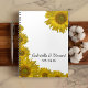 Le joli Carnet spiral Mariage Sunflower Edge Jaune peut être personnalisé pour créer un livre de conseils pour les jeunes mariés ou un livre d'invités pour leur cérémonie de mariage d'été ou d'automne. Ce chic carnet de notes en nuptiale fleurie présente des tournesols jaunes ornant les coins d'un arrière - plan blanc.