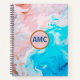 Un beau design marbré dans les tons rustiques, rose rousse, lavande, aqua et cérulean. Personnalisez avec votre nom ou vos initiales dans un cercle de roux et rose roux.