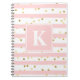 Un adorable motif pour femmes ou filles avec des rayures horizontales roses et blanches avec des points d'or éparpillés sur fait en fait un choix mignon dans les carnets pour la maison, le bureau, le retour à l'école, et d'autres projets. Un modèle texte au centre du design peut être personnalisé avec votre initiale monogramme.