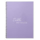 Cahier de notes de entreprise violet / lavande moderne et professionnel avec un design simple et minimal avec votre nom dans un script élégant et une police sans empattement contemporaine.